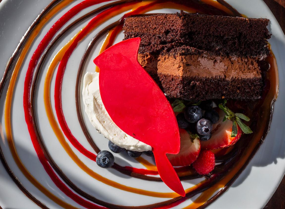 Additional entree selections, under the subheading “The Plot Thickens,” include a 14-ounce center-cut pork chop, pesto gnocchi, and a pair of Old Bay-seasoned crab cakes. First-rate “Side Plots” include roasted garlic mashed potatoes, broccolini in lemon butter, and smoked gouda or lobster mac and cheese.