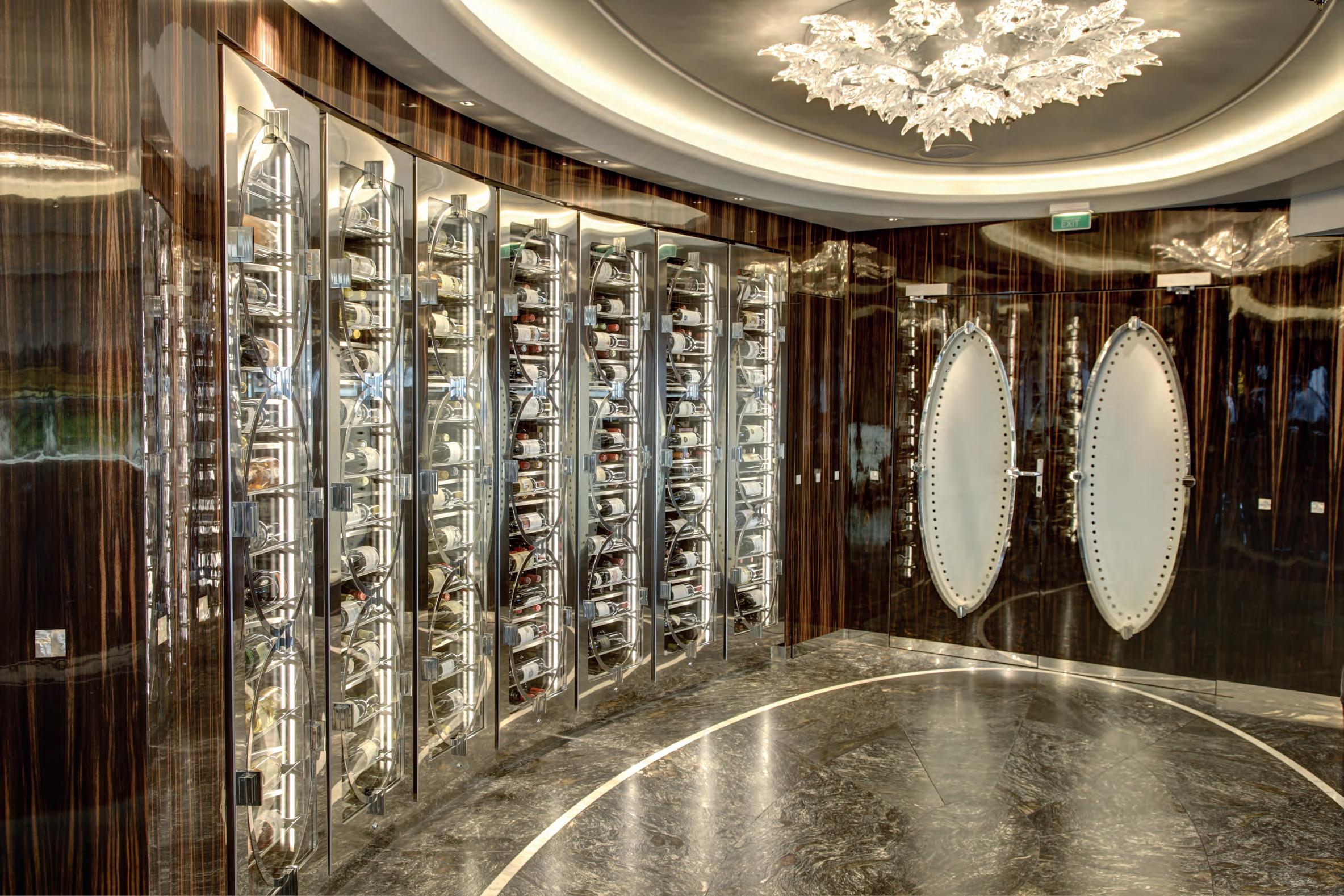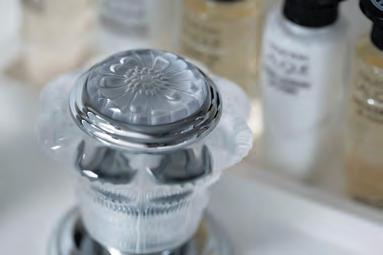 The Dahlia bar offers visitors the chance to admire Lalique crystal in a different light. Dahlia floral motifs are featured underneath the glass countertop where visitors can enjoy a drink.