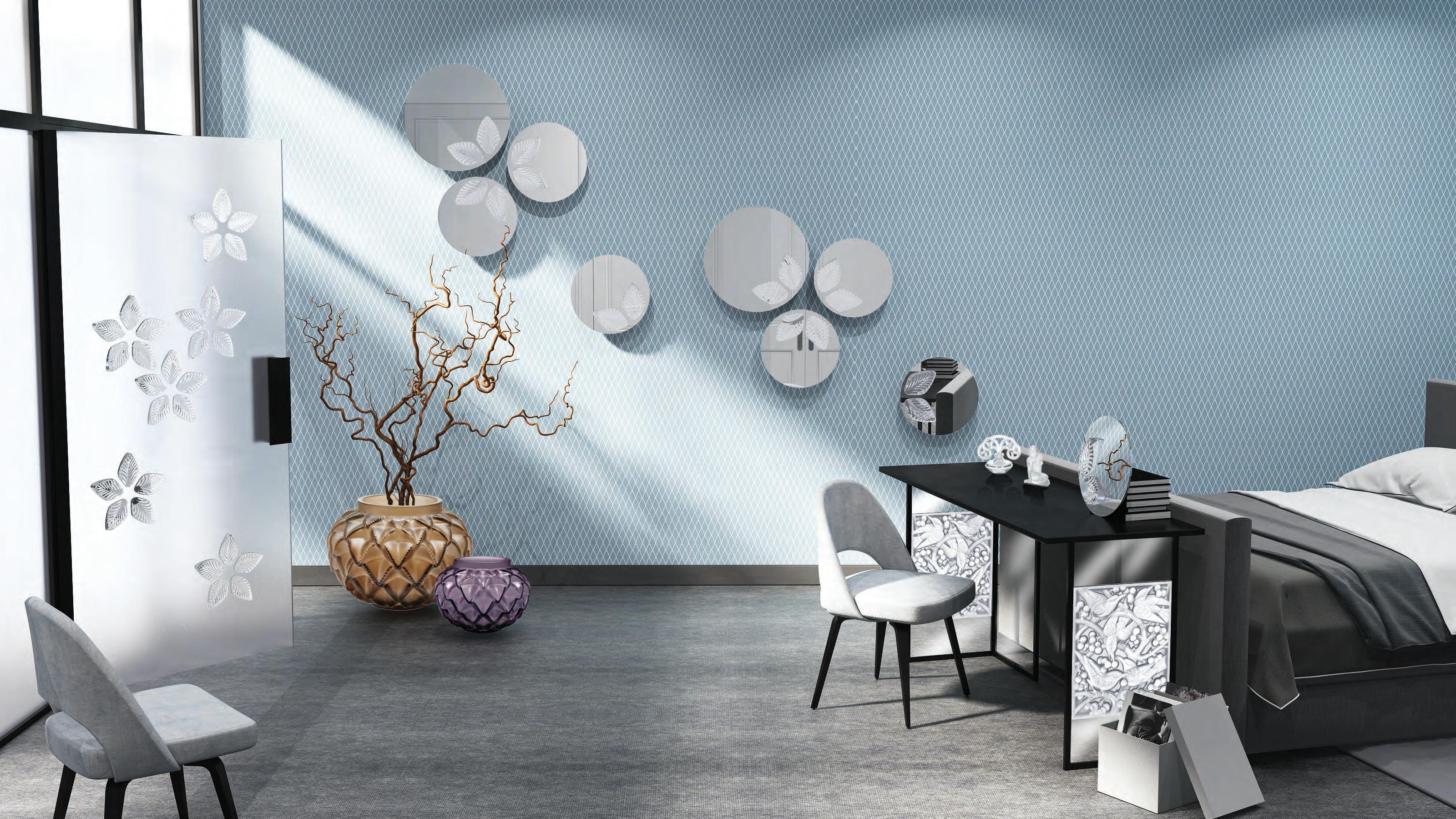 DAHLIA satin finished & mirrored panel, detail, photo DAHLIA space