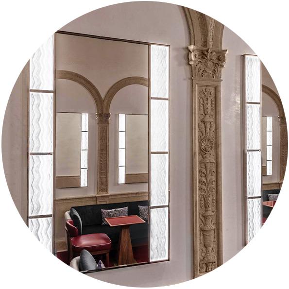 résidence privée, projet librement imaginé, image 3D - restaurant Château Hochberg, Wingen-sur-Moder, projet réalisé, photo ©Karine Faby UN MIROIR CRISTAL DORÉ - Suite LALIQUE au Prince Galles, Paris, projet réalisé, photo