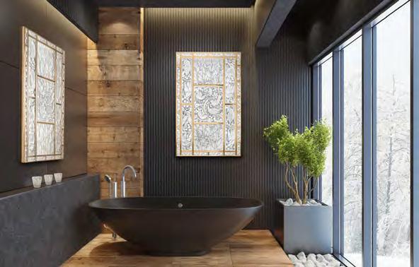 DAHLIA interior panel: Tempered, sa�n finish glass and gold stamped crystal 12 DAHLIA crystals