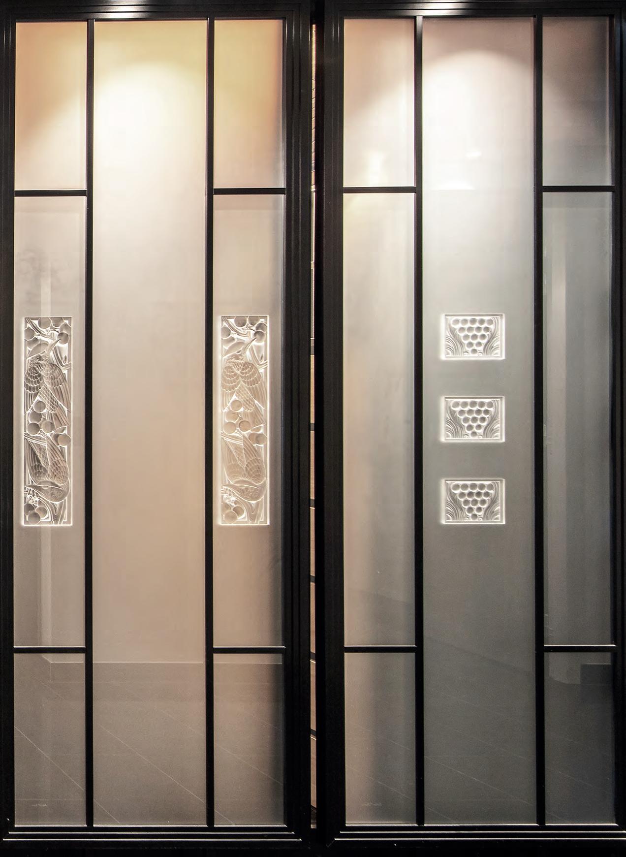 Matching with the many Lalique details around the restaurant, these handles offer a first glimpse of what lays behind the doors.