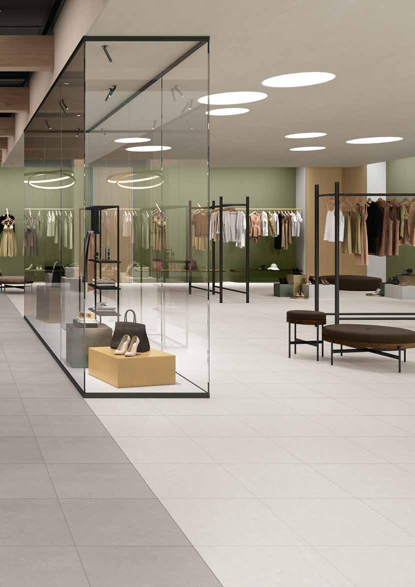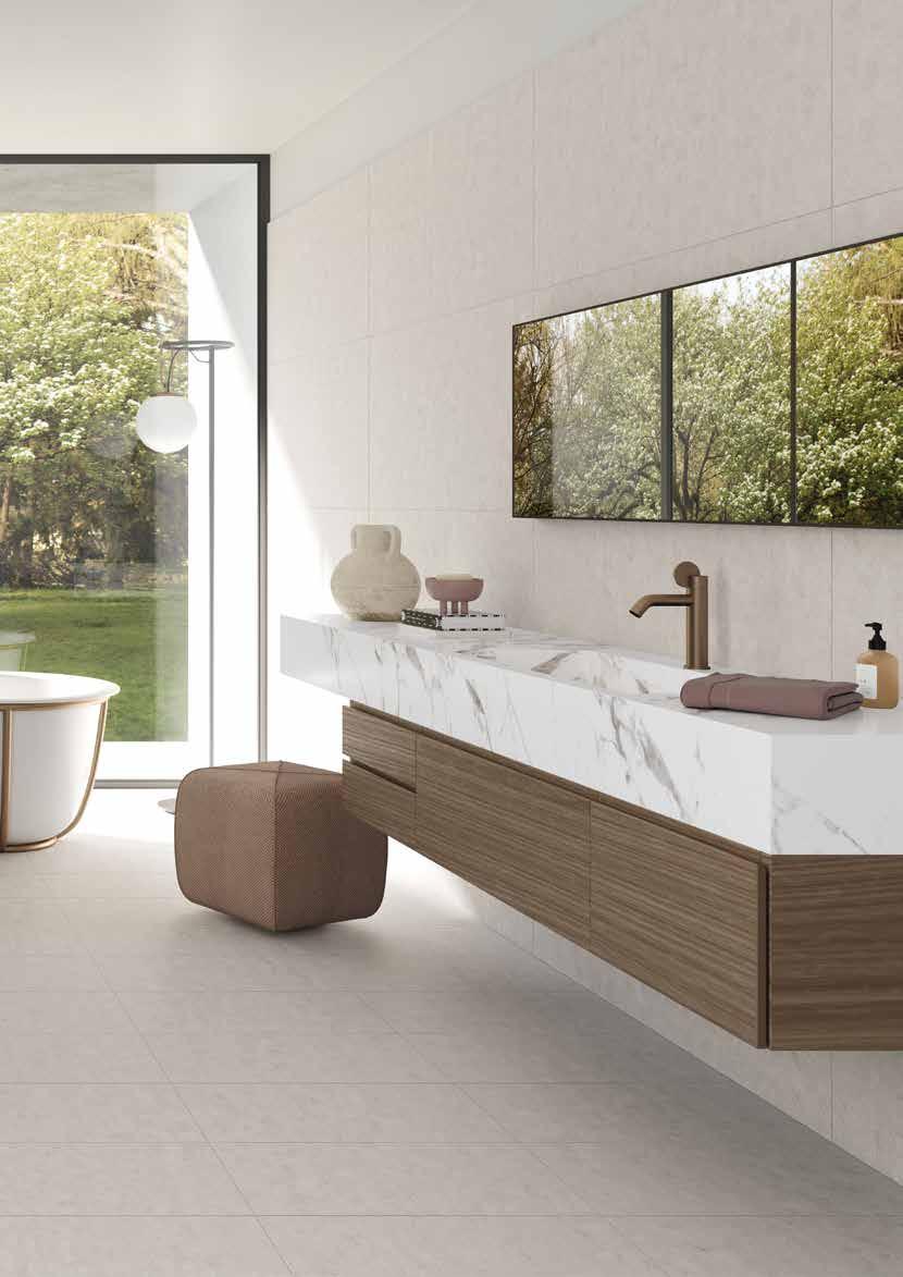 Beautiful tiles with soft colours, light textures, and superior technical features._Des tonalités sobres et des textures légères pour des revêtements qui allient la beauté à d’excellentes performances techniques._Zurückhaltende Farbtöne und leichte Texturen für Verkleidungen, die Schönheit mit erstklassigen technischen Merkmalen verbinden.