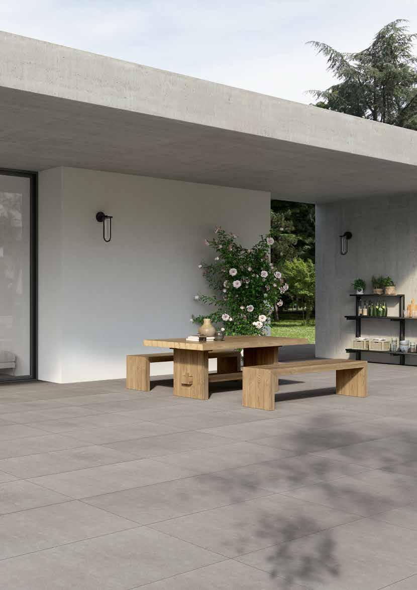Three finishes emphasise the texture of Timeless full-body porcelain stoneware tiles, creating visual continuity inside and out. _Trois finitions expriment l’intensité de la matière de Timeless, un grès cérame pleine masse pour des projets intérieurs et extérieurs coordonnés._Drei Oberflächenausführungen erzählen von der intensiven Materialität von Timeless, einem Feinsteinzeug in Vollkeramik für koordinierte in&out-Projekte.