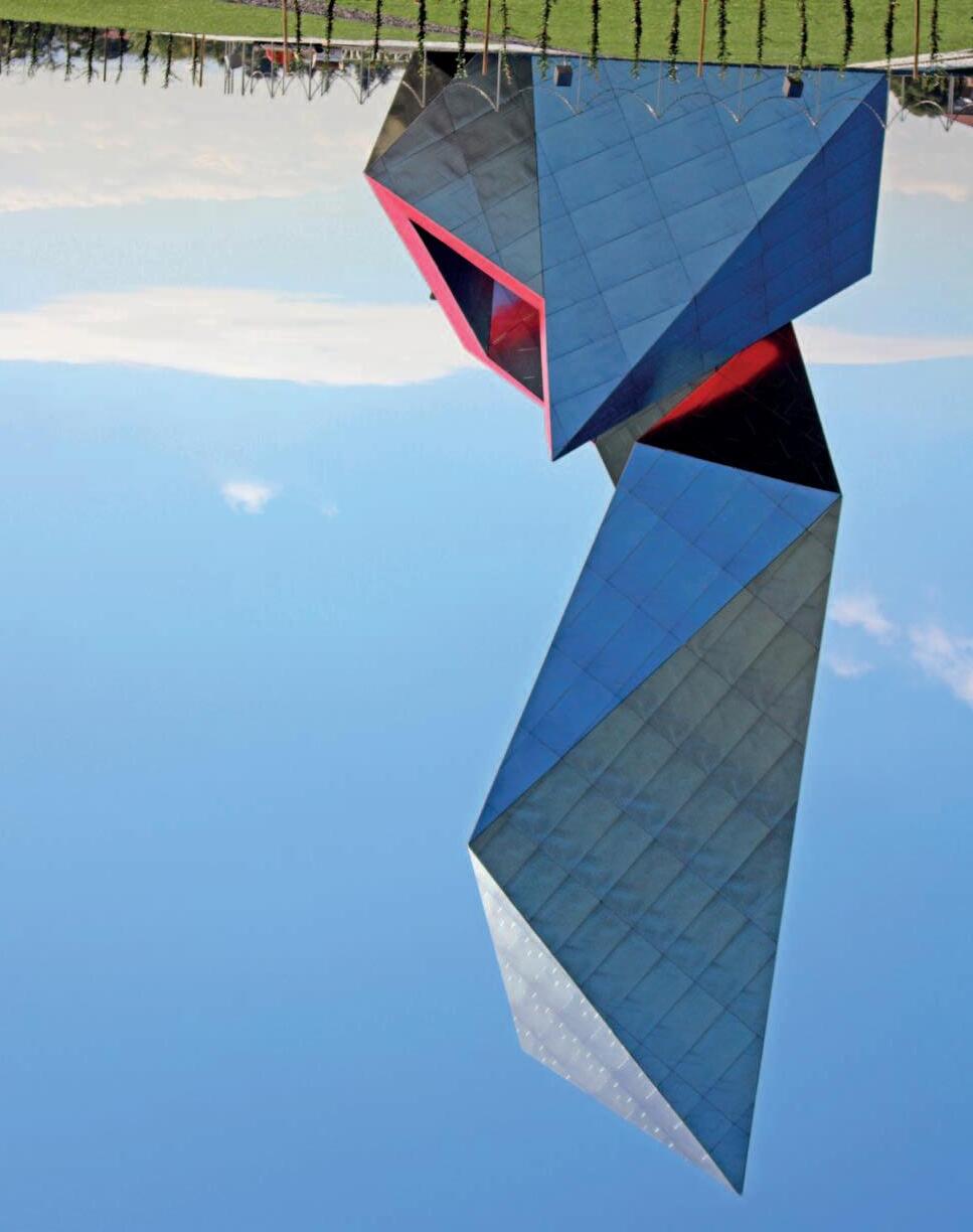 Dieser Effekt wurde anschließend beim VankePavillon auf der EXPO Mailand 2015 noch einmal aufgegriffen, wo das plastische, spiralförmig gewundene Volumen des Gebäudes auch durch die raffinierte lackrote Farbe (die eigens vom Farblabor von Casalgrande Padana hergestellt wurde) der zur Verkleidung verwendeten Platten hervorgehoben wurde. Diese wurden in einem komplexen, sich überlagernden Schuppenmuster angebracht, das beinahe an einen großen, bewegungslosen und stummen orientalischen Drachen erinnert. Im Oktober desselben Jahres wurde an der Piemontstraße, die Casalgrande mit Sassuolo verbindet, der große Monolith „The Crown“ eingeweiht, der von Daniel Libeskind entworfen wurde und der das von Casalgrande Padana geförderte und über das gesamte Gebiet verteilte Projekt ikonischer und monumentaler Bauwerke bereichert. Hinzu kommt die von Kengo Kuma entworfene „Ceramic Cloud“, eine magische geometrische Wolke, die unweit entfernt als „westliches Zugangstor“ zur Keramikregion angesehen wird. Mit ihrer Höhe eines fünfstöckigen Gebäudes überragt „The Crown“ das ebene Land und wirkt wie ein Wahrzeichen zur Orientierung. Auch hier trägt die Platte Fractile, die eine Fläche von dreihundert Quadratmetern bedeckt, dazu bei, die dynamische, aufsteigende und umhüllende Bewegung der geometrischen und skulpturalen Gesamtfigur aus materialexpressiver Sicht zu verstärken.