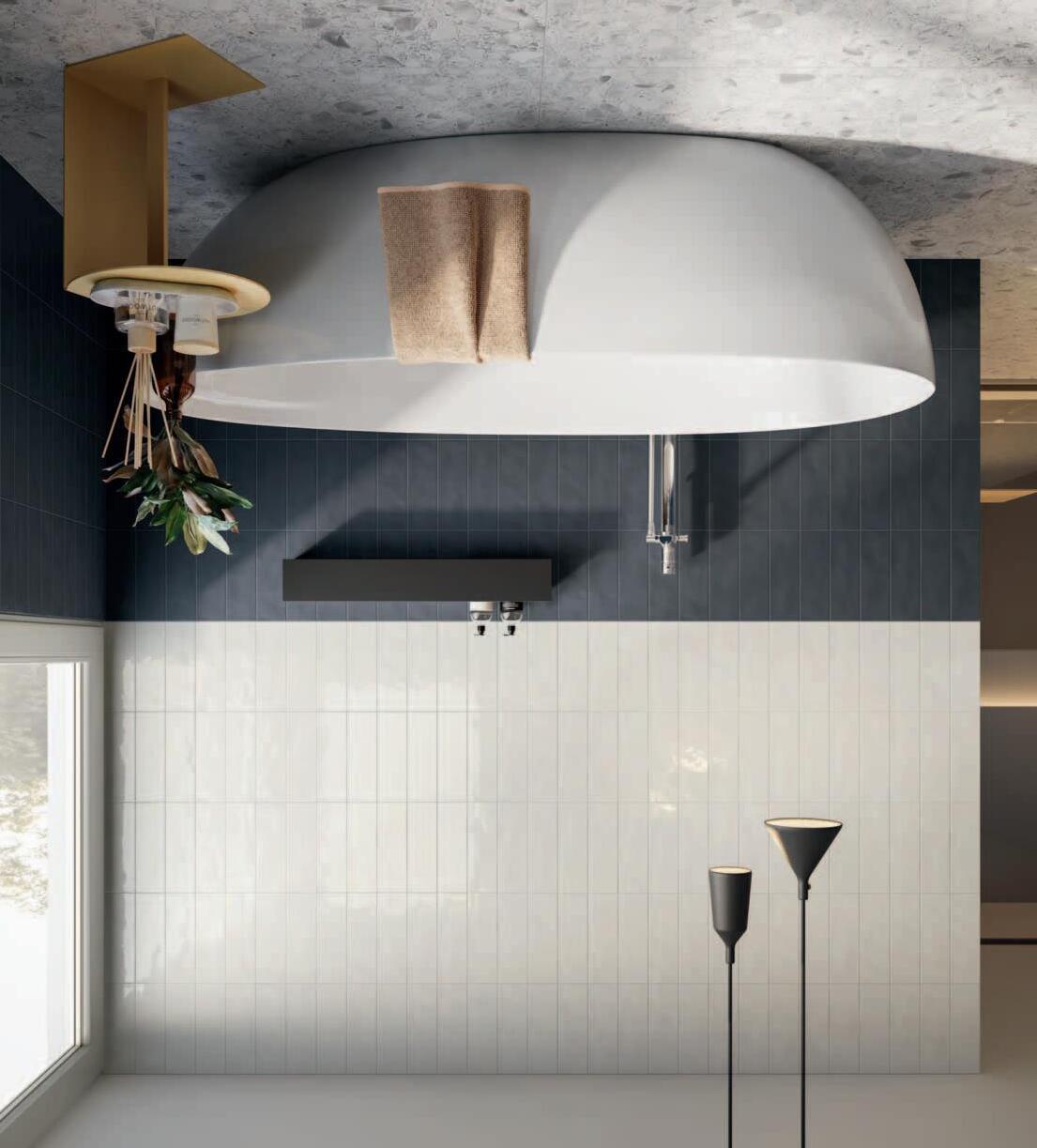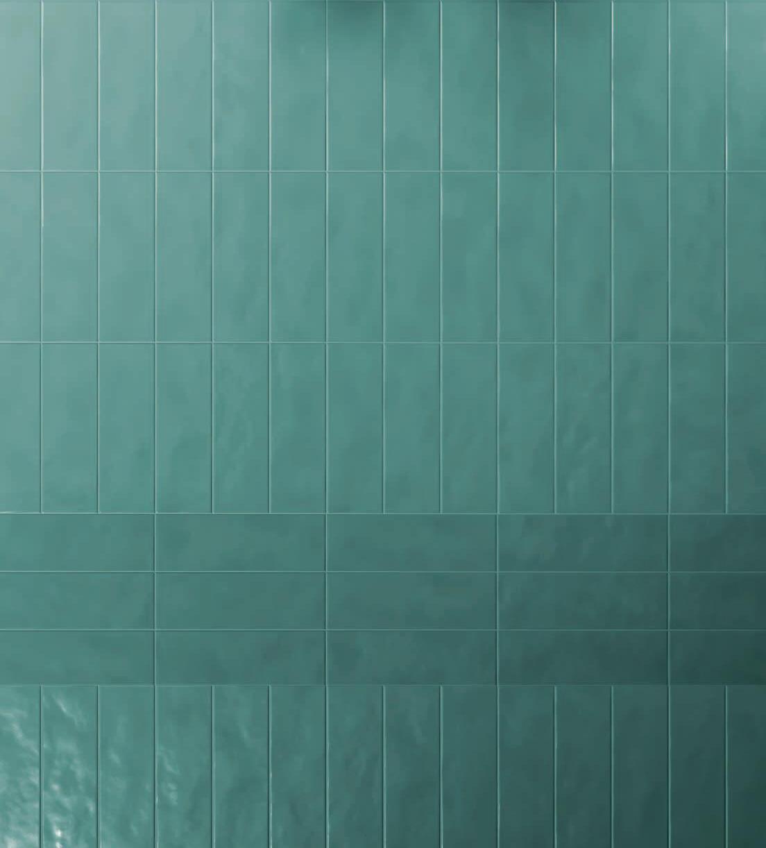 Nuances offre huit tonalités dans les deux différentes finitions satin et lux. Un blanc neige complète le noir pétunia tandis que deux nuances de gris accompagnent une série de vert-bleu ciel. Le choix de teintes unies souligne la dimension en listel du carreau à poser de différentes façons pose horizontale décalée comme un mur de briques face apparente ou à fond perdu en superposition, aussi bien horizontalement que verticalement.