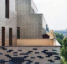 This same effect was later brought to another level in the Vanke pavilion at EXPO Milano 2015. The sinuous and spiralling structure of the pavilion was also enhanced by the glossy red colour of the tiles (specially created by Casalgrande Padana’s colour lab), which resemble the scales of a silent, motionless dragon. October of that same year saw the inauguration of Libeskind’s “The Crown”, a monolith sculpture that stands along the road connecting Casalgrande and Sassuolo. This iconic sculpture is one of the landmarks promoted by Casalgrande Padana across the area, which include Kengo Kuma’s nearby “Ceramic Cloud”, a unique geometric structure that serves as the western gate to the ceramic art district. “The Crown” stands as tall as a fivestorey building, dominating the area. Once again, the Fractile tiles cover this 300 sq.m surface, emphasising its dynamic, ascending geometric figure with their texture and expressive potential.