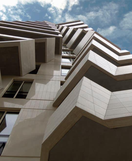 The fruitful partnership between Daniel Libeskind and Casalgrande Padana then continued with the creation of the Fractile tiles (2013). These dry-pressed, full-body porcelain stoneware tiles feature a threedimensional geometric pattern and a vibrant metallic surface that create a dynamic effect when applied to façades.