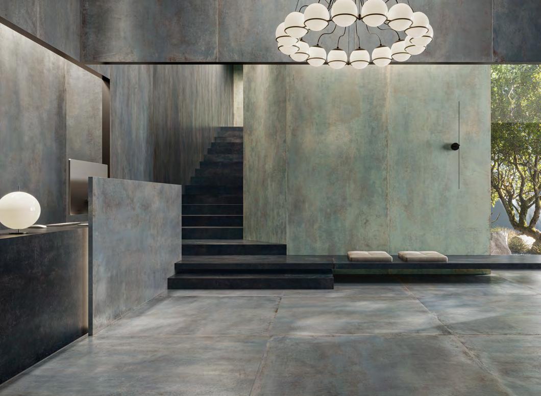 Naturbelassen Matt in den Formaten 60x60 cm, 60x120 cm und 120x120 cm in einer Stärke von 9 mm und im Großformat 120x278 cm in einer Stärke von 6 mm erhältlich. Fusion zeichnet sich durch raffinierte Farbtöne und den für oxidiertes Metall typischen Glanz aus. Lichtreflexe und materielle Einflüsse, die für die Verwendung von Metall in der zeitgenössischen Architektur typisch sind, verbinden sich mit der hohen Leistungsfähigkeit des Feinsteinzeugs, das so auf vielfältige Weise in allen Wohnbereichen eingesetzt werden kann, sowohl als horizontaler begehbarer Bodenbelag als auch als Material für maßgefertigte Möbel, Trennwände und eindrucksvolle Hintergrundkulissen. Fusion bietet eine materielle und haptisch ansprechende Stärke, die, angeregt durch die ästhetischen Eigenschaften von Metallen, das Zusammenspiel zwischen Ästhetik und Funktion für die Realisierung zeitgenössischer Projekte in jedem Anwendungsbereich am besten zum Ausdruck bringt: vom Vertragsbau bis zum Gastgewerbe, vom Hotel und Einzelhandel bis zu allen häuslichen Umgebungen.