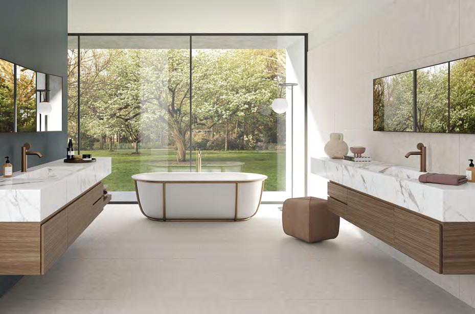 brillante. Cette dernière finition met davantage en valeur son aspect esthétique en lui donnant l’aspect brillant du minéral naturel. Les dalles de la nouvelle collection Supreme, particulièrement lumineuses dans la version brillante et à l’aspect velouté dans la finition naturelle, peuvent être utilisées aussi bien au sol qu’au mur dans différents projets : des bâtiments résidentiels aux espaces publics et commerciaux, jusqu’à l’univers des grands projets clés en main, du bienêtre, de l’hôtellerie, en passant par les espaces intérieurs des yachts et des embarcations de luxe. Flexible, souple et polyvalente, la nouvelle collection de Casalgrande Padana peut également être appliquée dans le cadre de la conception coordonnée de compléments d’ameublement exclusifs et personnalisés, afin de revêtir différents éléments : cloisons amovibles, cloisons de séparation, portes coulissantes, plans d’appui.
