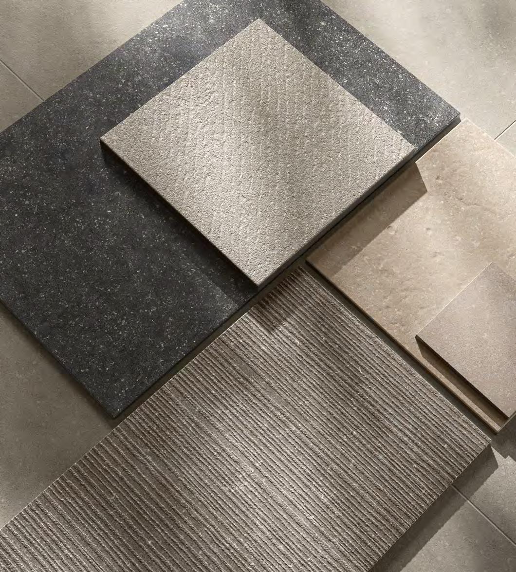 Timeless ist in fünf Farbgebungen (Charcoal, Ice, Seal, Taupe und Thunder), in drei Formaten (30x60 cm, 60x60 cm und 60x120 cm) in einer Stärke von 9,4 mm in den Oberflächenausführungen Naturbelassen Matt, Glänzend oder Gehämmert und in einer Stärke von 14 mm im Format 60x60 cm in der Ausführung Naturbelassen Matt erhältlich. Dank eines zweischichtigen Aufbaus aus mikronisierten Pulvern sind verschiedene Farbkombinationen möglich, die an das Referenzmaterial erinnern und so die Palette der Anwendungsbereiche erweitern. Timeless zeichnet sich durch eine einheitliche Farbe und Textur zwischen Oberfläche und Innerem aus, da die Oberfläche und die Fliesenmasse die gleiche Stärke aufweisen. Zu guter Letzt trägt die gehämmerte Oberflächenausführung dazu bei, der Ausrutschgefahr in Umgebungen, in denen dieses Risiko besteht, vorzubeugen.