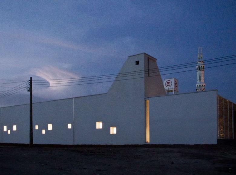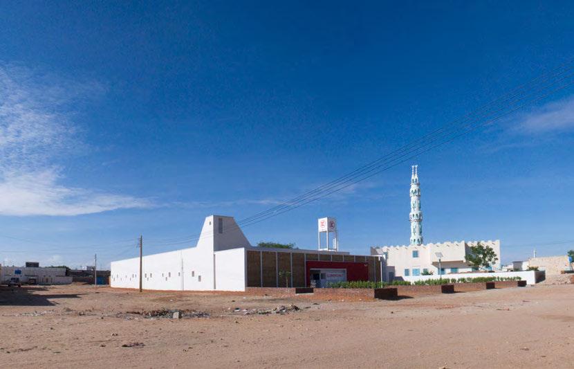 Ausgehend von diesen Prämissen entstand das Projekt mit dem Ziel, einen „technologischen Rückgang“ durch eine synergetische Mischung aus Moderne und Tradition zu erproben, um damit einen Ort für Pflege und Begegnung zu schaffen, ohne Abstriche bei den hohen Standards für Komfort und Umweltsicherheit machen zu müssen, die in einem Krankenhaus erforderlich sind. Der einstöckige Bau, der um einen großen Tabaldi-Baum (Affenbrotbaum) herum entwickelt wurde, verfügt über einen großen Innenhof mit Säulengang, in dem auch ein Platz für Spielmöglichkeiten für Kinder im Freien untergebracht ist. Neben dem Hauptflügel befindet sich ein kleinerer Trakt mit dem Patientenzimmerbereich. Der architektonische Komplex macht sich die typologischen Prinzipien des arabischen Hofhauses zunutze und reduziert die Öffnungen der der Sonne ausgesetzten Seiten auf ein Minimum, wodurch eine von kleinen Öffnungen geprägte weiße Fassade entsteht. Die anderen Fassaden werden durch Rahmen aus geflochtenem Bambus abgeschirmt, die an die traditionellen Zaunsysteme in Flüchtlingslagern erinnern.