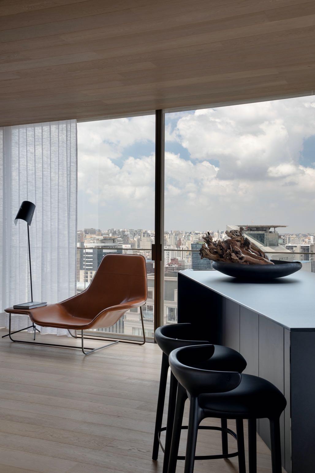 STUDIO GUILHERME TORRES DESIGNED THE COSY AND CONTEMPORARY INTERIORS BY SINUOUS AND MOVING SHAPES FOR AN APARTMENT WITH A PRIVILEGED VIEW OF THE CITY OF SÃO PAULO.