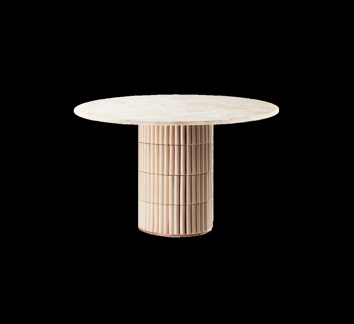 the Artu brand, drawing inspiration from picturesque snowy landscapes. It features monolithic tactile details that subtly evoke the warmth of a serene northern scenery, instilling a sense of infinite harmony. Lymmy stands out with its striking splayed proportions, supported by three wide legs. www.levantindesign.com