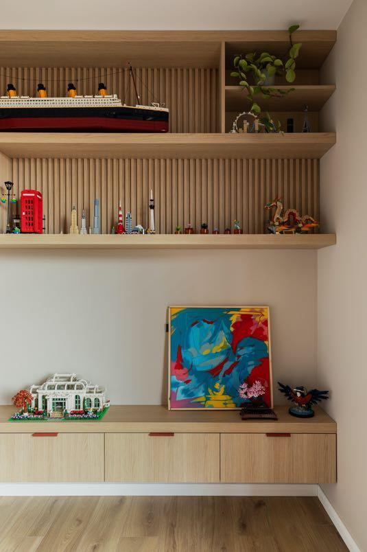 The owners love to travel and bring back designer accessories and souvenirs that add a personal touch to the space as well as their impressive collection of LEGO models prominently displayed. The design concept was closely tied to the interests
