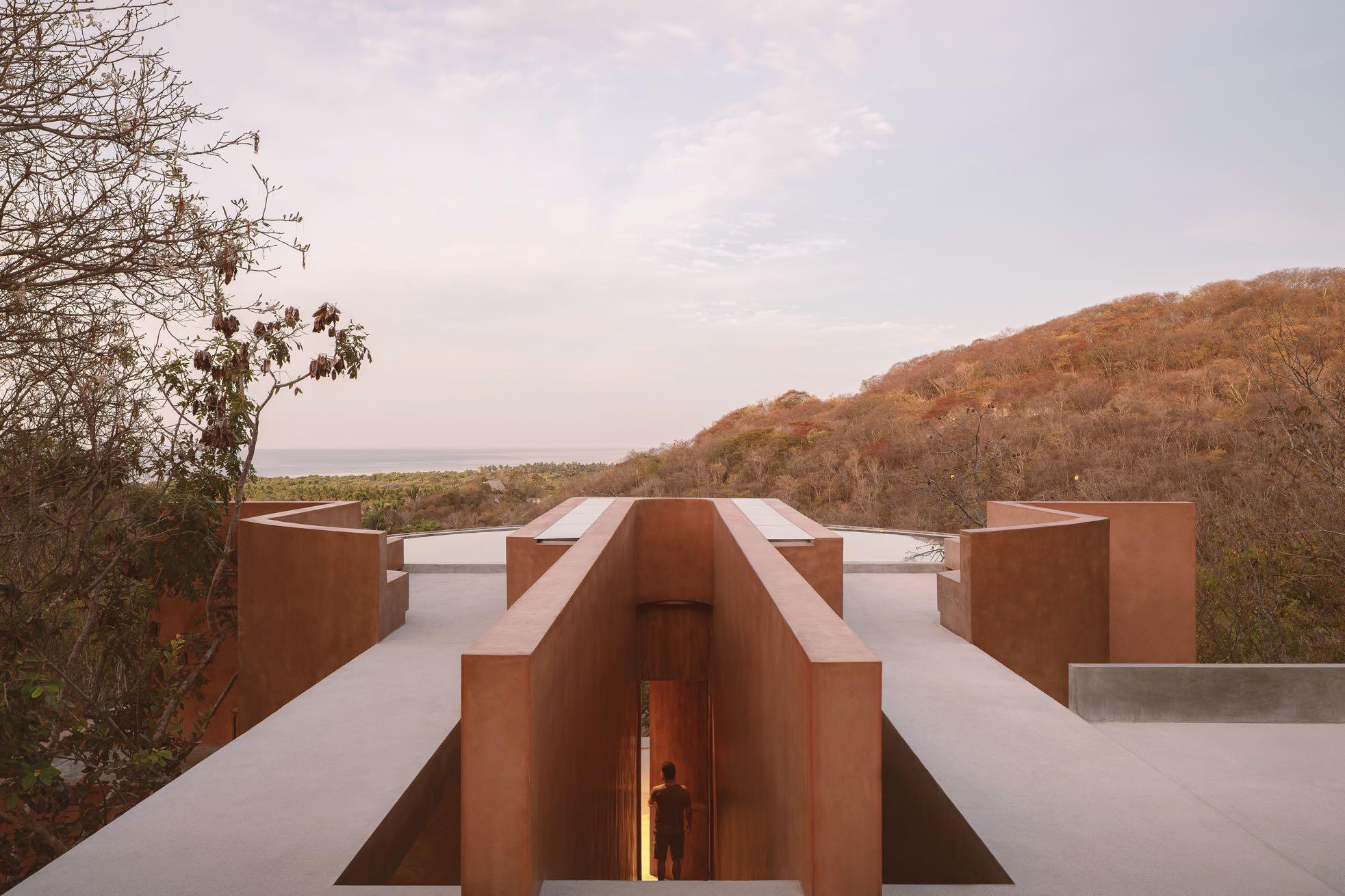 The house is located on the coast of Oaxaca, on a steeply sloped site that descends westward,
