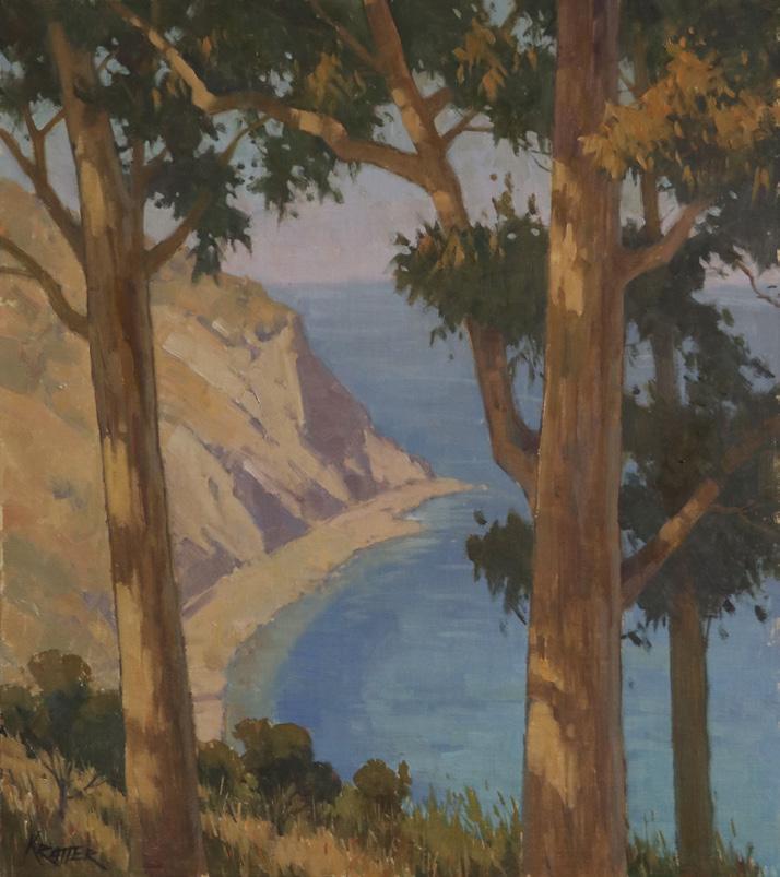 Plein air painting is the practice of painting in the landscape. The technique was brought to the forefront of popular culture by French Impressionists and derives its name from the French term “en plein air” or “in the open air.” Artists of this era were well-equipped to capture the beauty of nature beyond the studio with portable easels and paint in packaged tubes. As the movement spread, many painters found their way to Catalina Island, creating works that cover decades of the Island’s natural history. Plein air painting reached its peak on Catalina around 1925. By the 1950s, other techniques had become more prominent and the plein air approach fell out of favor.