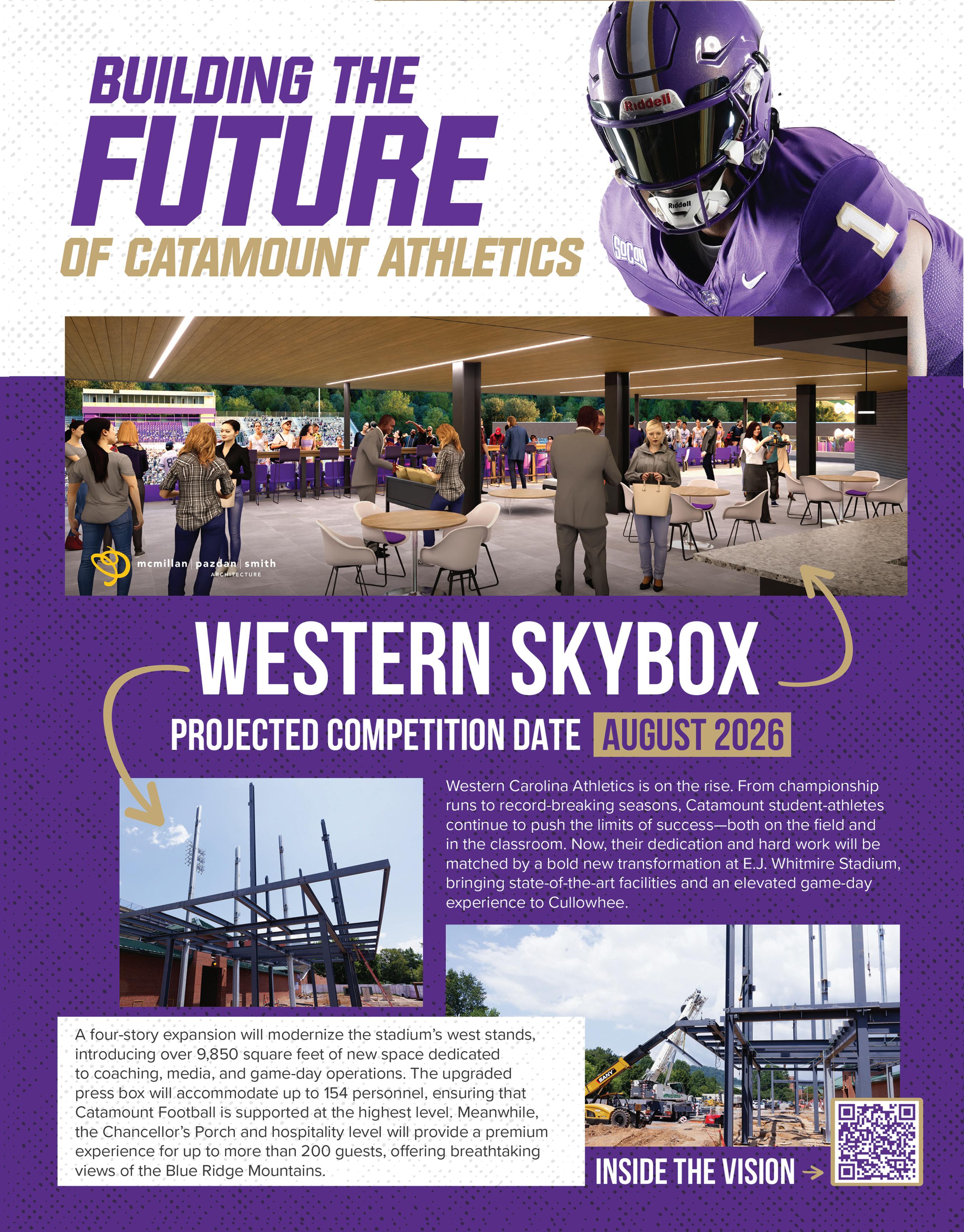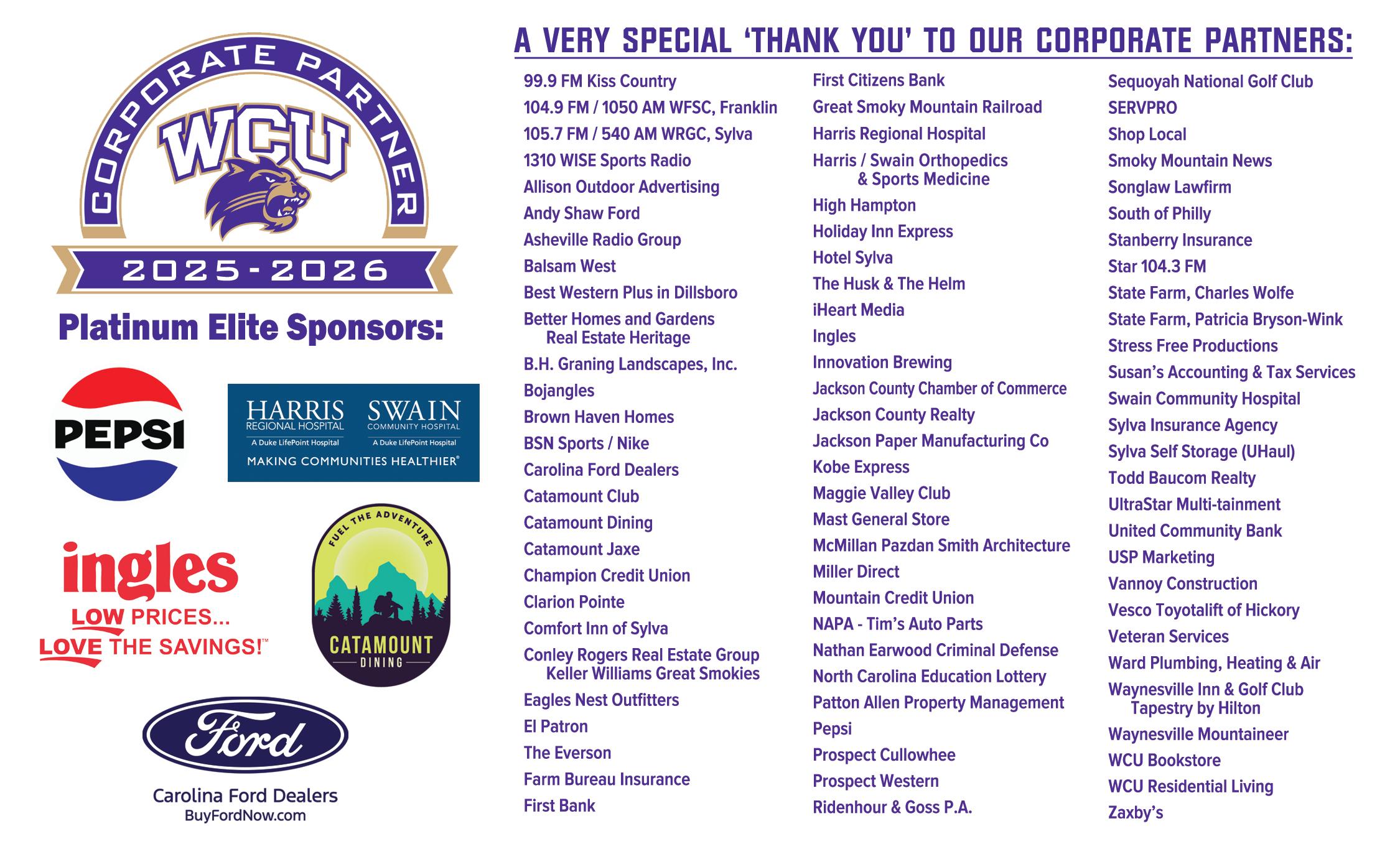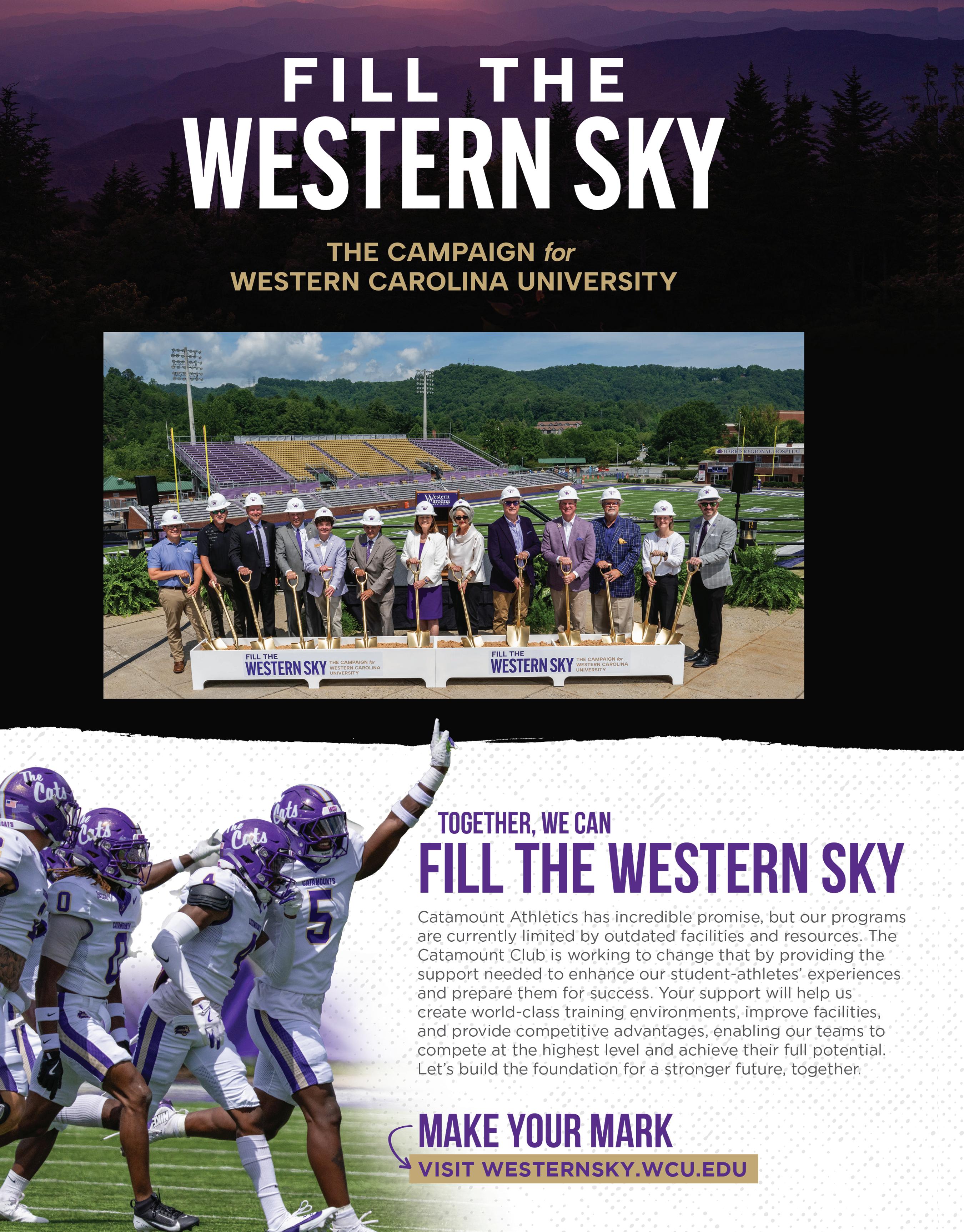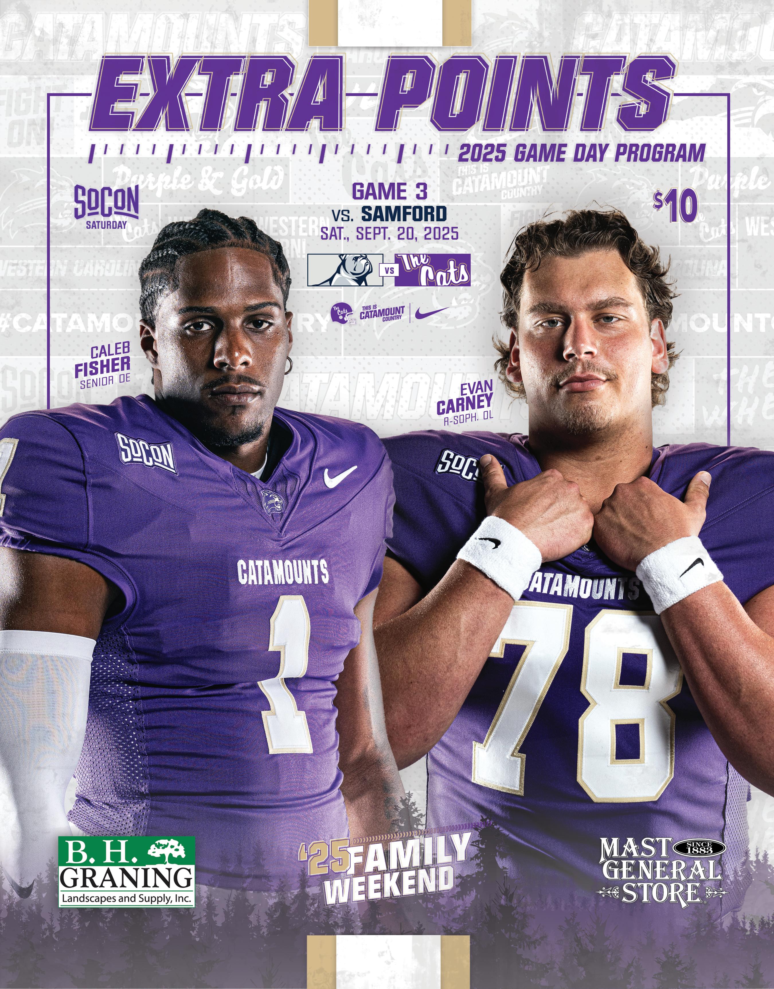 Paul Setliff; WCU Creative Media, Marlon Howard and Ava Schmitt. Printing is by the on-campus WCU Print Shop. Advertising sales for EXTRA POINTS are administered by Chad Gerrety and Kaleb Ambrose. To advertise with or sponsor the Catamounts, call (828) 227-2767 or (828) 227-2038.