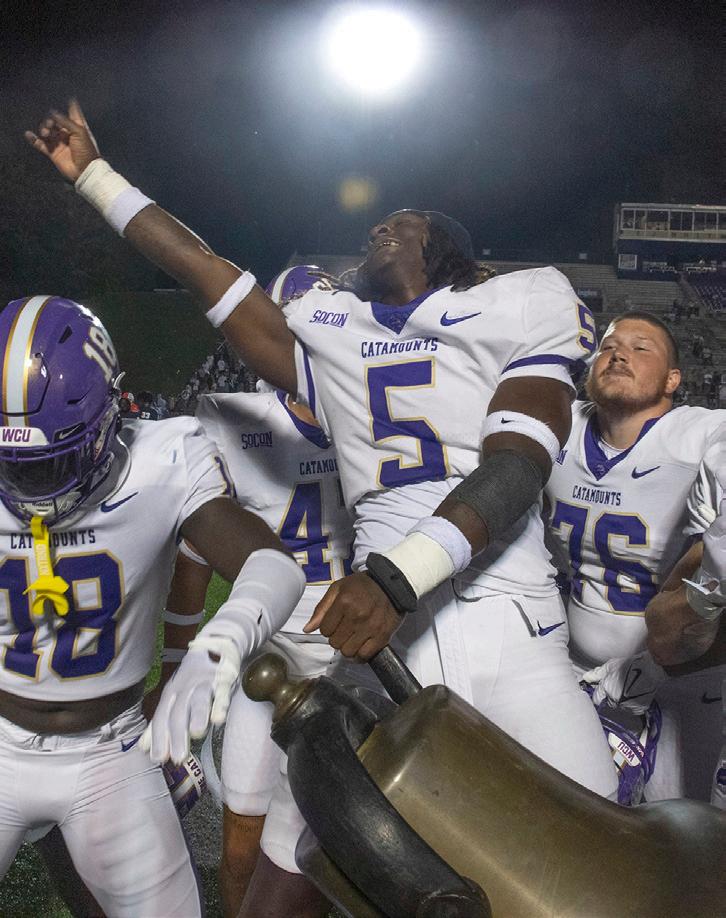 Western Carolina continues a tradition resumed in 2009, returning the “Victory Bell” – a mounted, transportable bell that rings the football team’s arrival for pre-game and also accompanies the “Pride of the Mountains” Marching Band and the Catamount Cheerleaders in their pregame parades to E.J. Whitmire Stadium / Bob Waters Field.