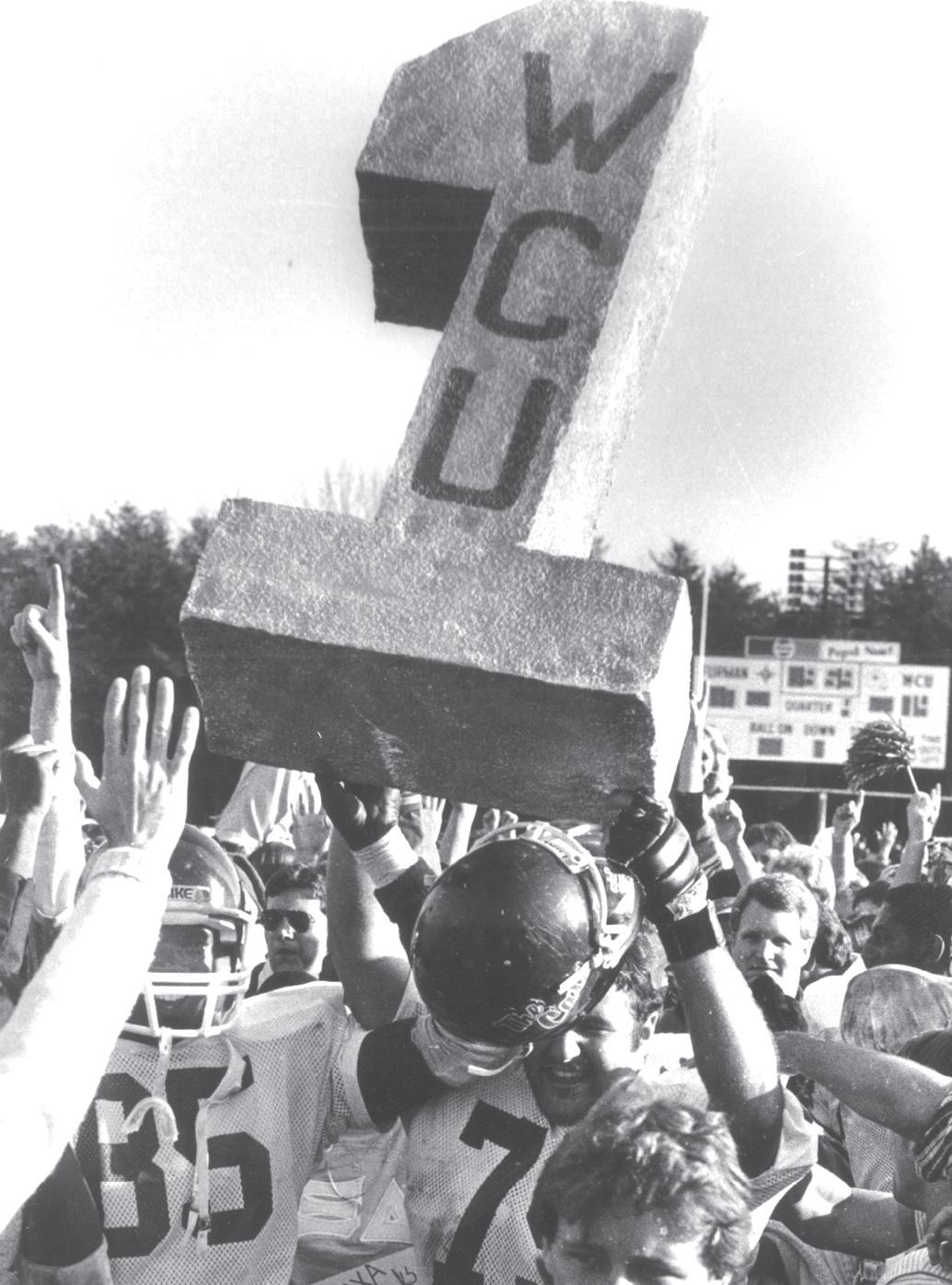 Despite the strong comeback in regular season play that produced an 8-2-1 record and No. 9 national ranking, Waters’ Cats barely made it into the I-AA playoffs. They proved their worthiness the next three weeks with comefrom-behind, heart-stopping wins over Colgate (24-23), Holy Cross (28-21) and Furman (14-7). The win over Furman was particularly pleasing as the teams had tied, 17-17, in the regular season, and allowed the Paladins to win the SoCon title as they had played and won one more league game due to a scheduling quirk. Over 5,000 WCU fans traveled to Greenville, S.C., for the rematch which was aired by CBS-TV.