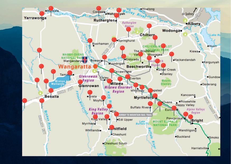 Wangaratta offers the chance live close to world-class, award-winning wines from renowned nearby wine regions such as King Valley, Glenrowan, Milawa Gourmet Region and Beechworth. Regional produce is celebrated both within the town's modern restaurants and throughout farms and wineries nestled around the region.
