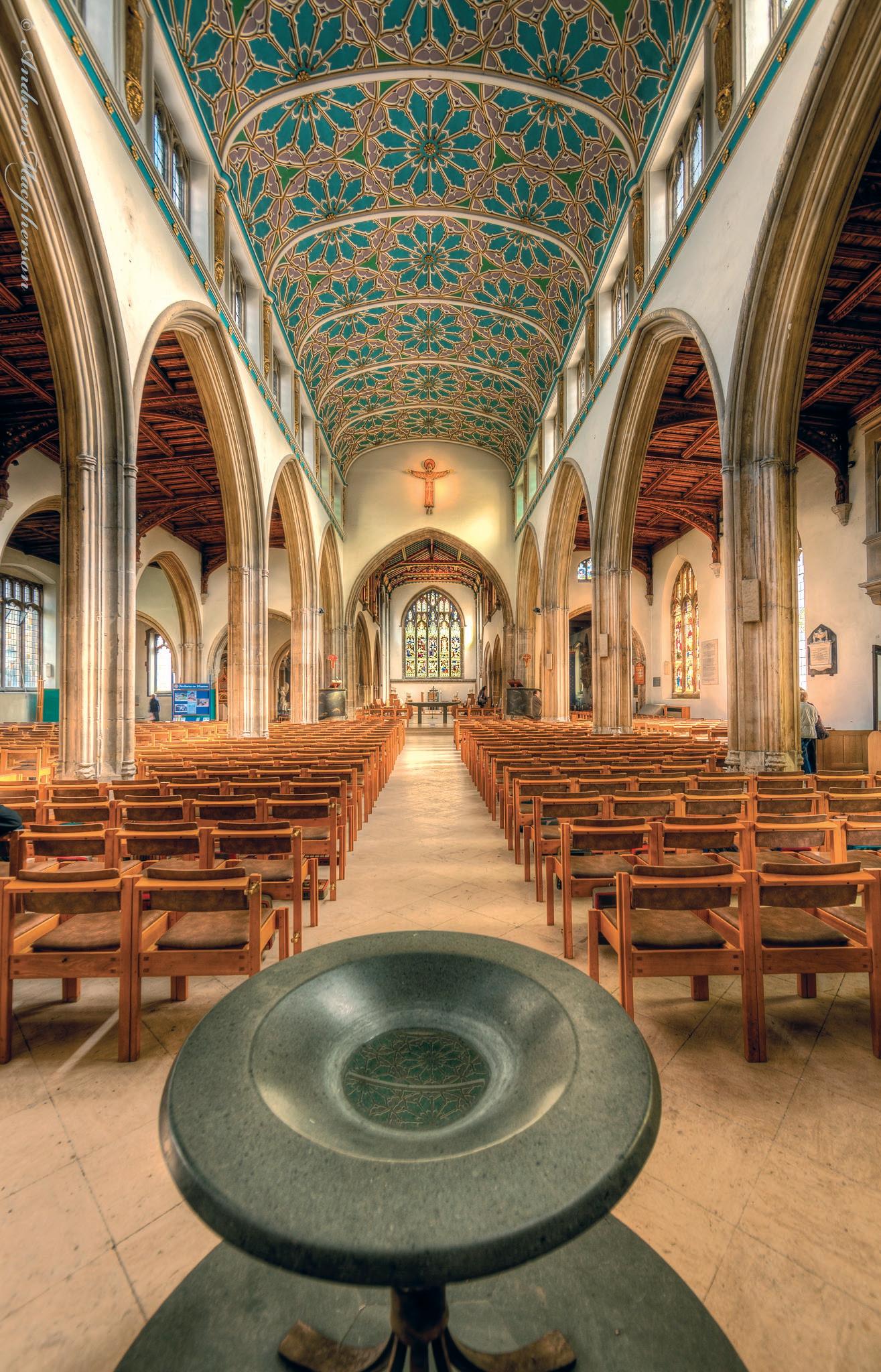 As well as being President of the RCO, Catherine Ennis is also Organist and Director of Music at St Lawrence in Jewry, a fine Wren church near the former medieval Jewish ghetto rebuilt in 1677 after the Great Fire of London and then again in 1957 after suffering extensive damage during the Blitz. It is now a guild church and the official church of the City of London Corporation. Like most Wren churches, few walls are at right angles, but the ‘sumptuous barn’ white interior with its gold leaf and chandeliers is spectacular.