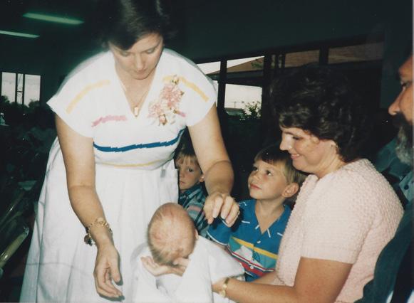 continued on page 2 This early Baptism took place while St. Timothy was still located in the Store Front. Meagan Scott (baby) is held by her mother, Mary Scott.