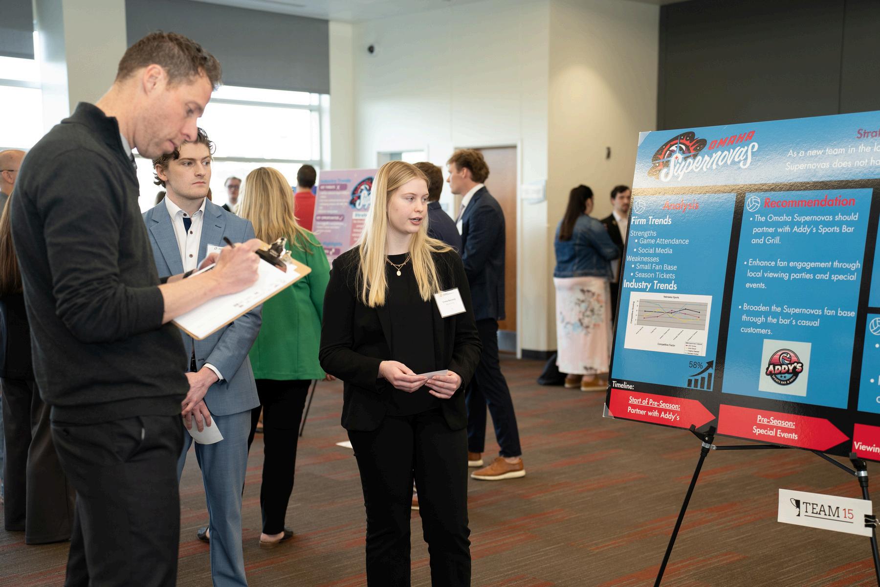The competition has evolved since its inception thanks to the faculty that serve as the lifeblood of the event, including Dr. Brent Clark, Dr. Leif Lundmark, Mr. Ed Cochran, and co-directors Dr Erin Pleggenkuhle-Miles and Dr Erin Bass Each iteration is aimed at enhancing the student experience while achieving our goals of professional development and strategic thinking Excitement and acceptance of the program has continued to grow each year. The faculty are committed to continuing to innovate and work with community partners to deliver a program that is not only a flagship for the university, but a flagship for showcasing young talent for Omaha’s thriving business communi