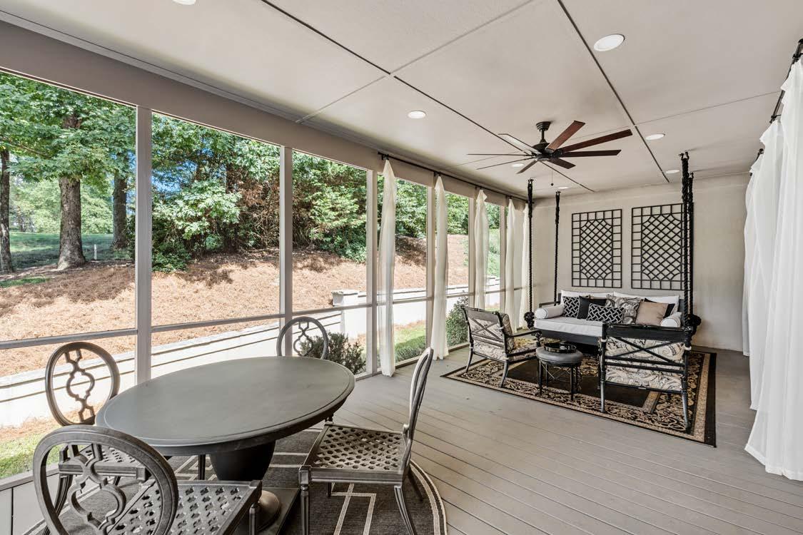 Designed to embrace its natural setting, this home invites effortless outdoor living. The screened porch and expansive deck offer the perfect vantage point to relax, entertain, and watch golfers on the 7th hole. Natural stone accents, a three-car side-entry garage, and impeccable landscaping complete the exterior.