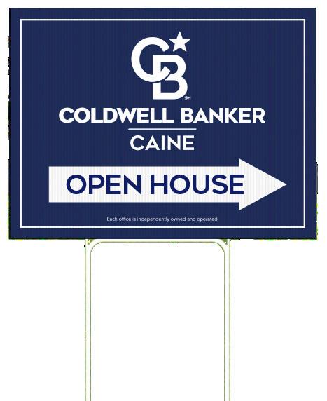 • Yard Signs: A professionally designed Coldwell Banker Caine yard sign will be strategically placed in front of your home to increase visibility to passersby and attract attention from neighbors and early-stage buyers.