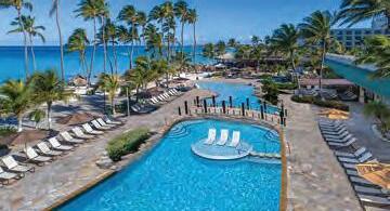 all-inclusive packages available. Here you’ll enjoy three ocean view pools, swim-up bar, on-site restaurants and bars, fitness center, full-service spa, and a variety of hotel activities from boat tours and sunset sails to scuba diving, snorkeling, and Jet Ski experiences through Aqua Mania Adventures.