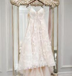 Finding her wedding gown was a long process for Rachel. “I tried on so many gowns I lost count. I had a vision and honestly ended up going in a completely different direction.” Although Rachel wasn’t a fan of the skinny straps and bling the dress had, she still got the feeling she was waiting for when she put