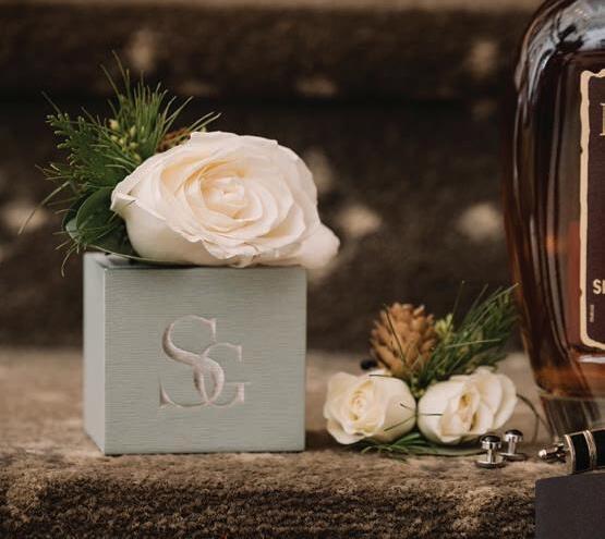 Prior to their wedding ceremony, the two decided to share an intimate moment together during a first look. Seeing Donna for the first time as she walked out in her wedding gown was Dave’s favorite memory of the day. She donned a mermaid-style gown, accessorized with simple pearl earrings, and carried a bouquet made of neutral-colored roses with pops of wintergreens. The groom sported a classic black tuxedo with a champagne vest and a sandstone boutonnière.
