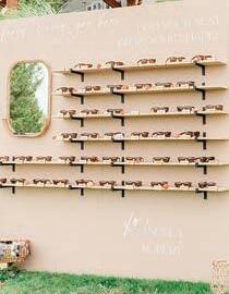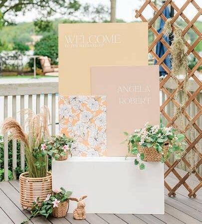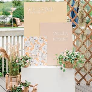 After Melissa and Jon recessed down the aisle, they stepped away for a private cocktail hour to bask in their newlywed status before joining their guests. “It was nice to have a quiet moment together to take it all in,” they reminisced. Guests found their tables through an acrylic seating chart, made by a close friend, that said, “And at every table, I’ll save you a seat,” a nod to Melissa’s love for Taylor Swift. Greenery garlands with florals intertwined, along with pillar candles at staggering heights for visual interest, topped the farmhousestyle tables. Wood table numbers and neutral napkins completed the tablescapes.