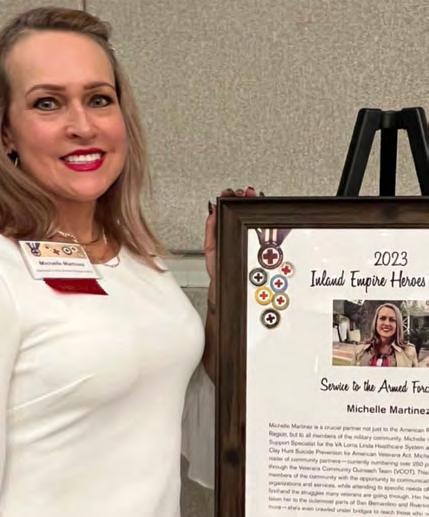 20 Michelle Martinez (’21) was chosen to receive the American Red Cross Inland Empire Chapter’s 2023 Services to the Armed Forces Hero Award because of her commitment to outstanding leadership, exceptional job performance, community service and overall presentation as a service provider to the Veterans and the VA Loma Linda/Ambulatory Care Center in Redlands, California.