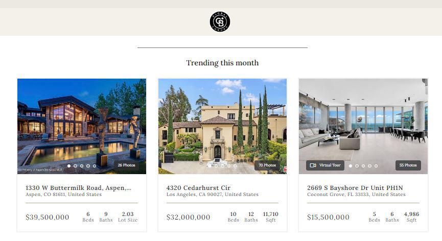 • Highlighted your property in the “Trending this Month” section on the The List landing page on the Coldwell Banker Global Luxury® Editorial site. The feature includes a property tile that clicks through to your listing on coldwellbankerluxury.com