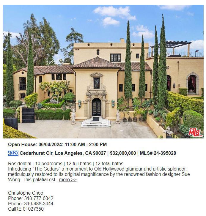• Print and digital showcase of your property in the June 8, 2024 edition of Southern California’s LA Times Hot Property publication, including prime placement on the cover of Coldwell Banker’s Global Luxury® centerfold spread. The LA Times Hot Properties magazine reaches 1.2 million readers every week with over half of the viewership owning homes valued at over $2MM+.