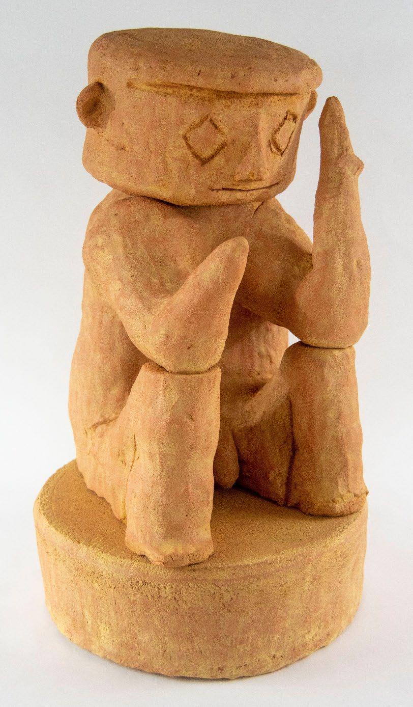 In The Museum of Found Objects, I use this opportunity to combine works into layered and comical – and intentionally confusing – mixtures that critique the divide among objects that institutions build upon. The works are bootlegged in clay from sources such as screenshots from online museum collections, pages from out-of-print catalogues, bookmarks from social media, and stills from documentaries (and typically from one image alone, with many of their edges, backsides, and level-sitting sides and scale left up to the imagination). These works are then further taken out of context with wall labels that emphasize them as objects they are not (e.g., a Ken Price cup as a relic from the volcanic explosion at Pompeii, a guitar made by a child as a Pablo Picasso sculpture, and an early Martin Wong piece as a taxidermized cryptid from Indonesia).