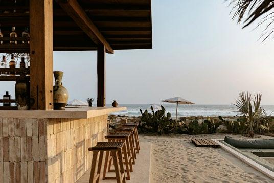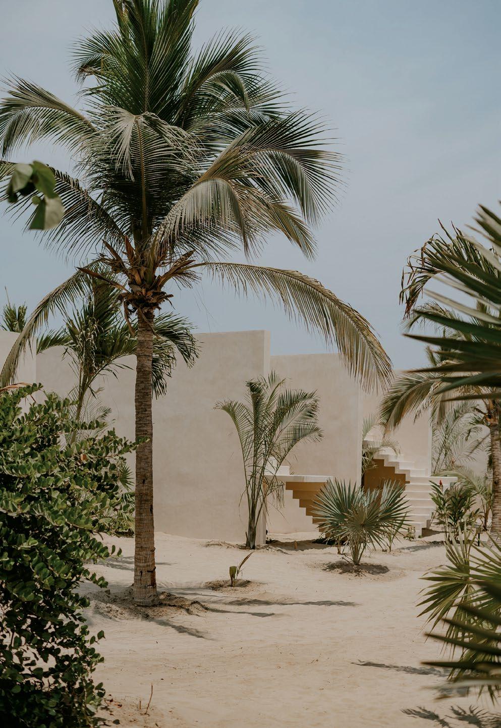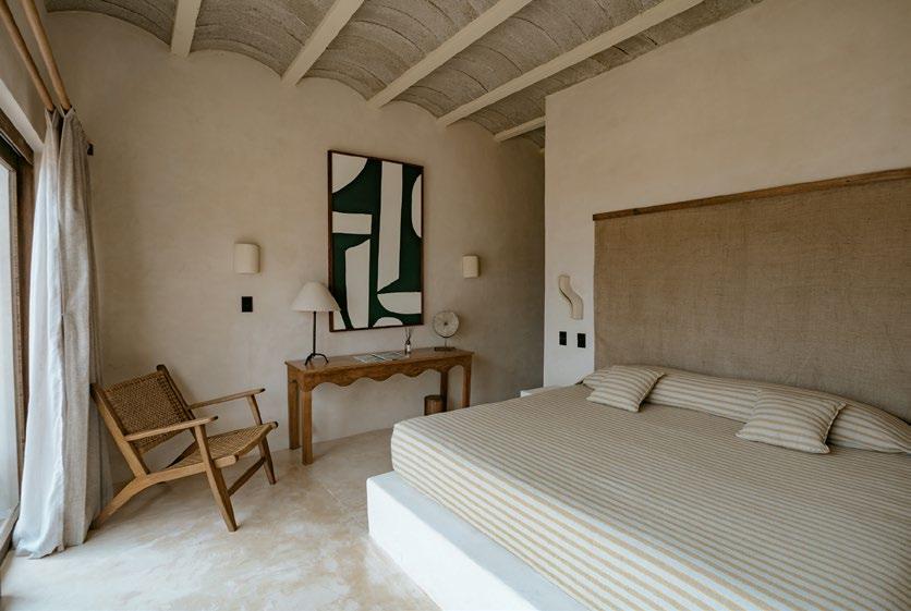 If a naturalist, an artist, and a surfer collaborated on a hotel, CASA YUMA might be the result. Located on the shores of Puerto Escondido, close to breaks of Carrizalillo Bay and Playa Zicatela, the minimalist hotel, constructed from a vegetable resin and limestone concrete with accents of worn wood and Oaxacan brick, is the brainchild of architect Ricardo de la Concha. The 25 guest rooms, dreamed up by coowner and interior designer Sara Skalli, make up an adultsonly destination that lets guests glide from the beach’s fullservice cabanas to yoga, meditation, and massage sessions before gazing over the Pacific from the pool. Afterward, the open-air restaurant, serving elevated traditional Oaxacan food like grilled octopus with red sauce and tamales cooked in the kitchen’s tortilla oven, awaits. Skalli says, “Casa Yuma is a place for those seeking tranquility at the end of the world while wanting to feel at home.” casayuma.com.