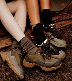 The West Coast may be the birthplace of many standout trekking, climbing, and camping retailers, but Italy is no slouch when it comes to creating wardrobes meant to outlast the elements. LORO PIANA’s new Into The Wild collection of women’s and men’s gear adds an element of understated elegance to garments like bomber jackets, parkas, rainproof capes, trousers, leggings, and shorts designed for the great outdoors. The bonus is performance fabrics meant for layering that mix textile innovations with silks and cashmeres plus heat-conducting graphitederived membranes — all made with impeccable tailoring and a chic palette. There’s also a sleeping bag and suitcase-striped camping chair