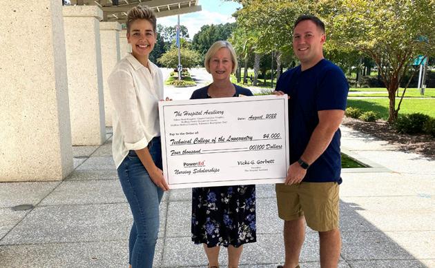 The Hospital Auxiliary awarded Technical College of the Lowcountry (TCL) nursing students Chelsea Selner and Dean Smith $2,000 each, funded through Power:Ed. The Power:Ed grant given to local nonprofits to help South Carolina students succeed is a philanthropy of South Carolina Student Loan Corporation (SCSLC). Both Selner and Smith are working at the Hilton Head Hospital while attending TCL’s nursing program. Marge Sieban, the Hospital Auxiliary Scholarship chair awarded the scholarships.
