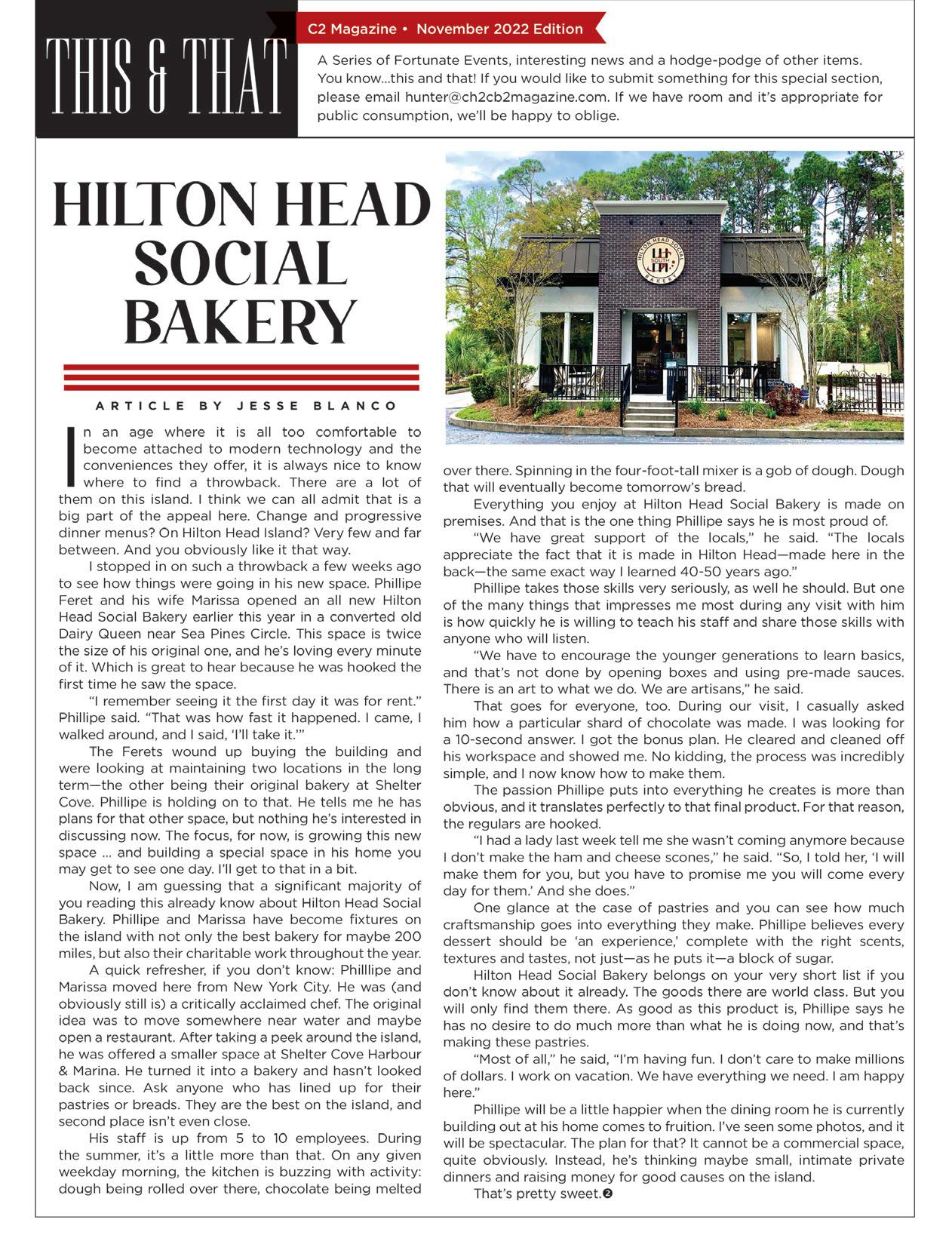 MAGGIE WASHO Publisher / Editor-in-Chief play Instagram - @ch2hhimag Facebook - facebook.com/ch2magazine TikTok - @ch2mag YouTube - youtube.com/celebratehiltonhead Be sure to follow us on Social Media