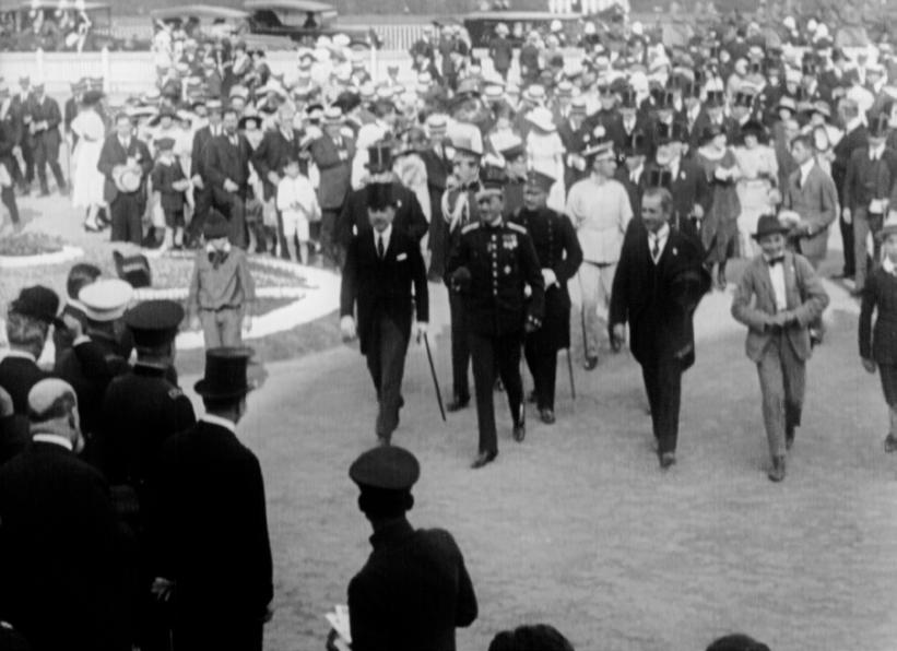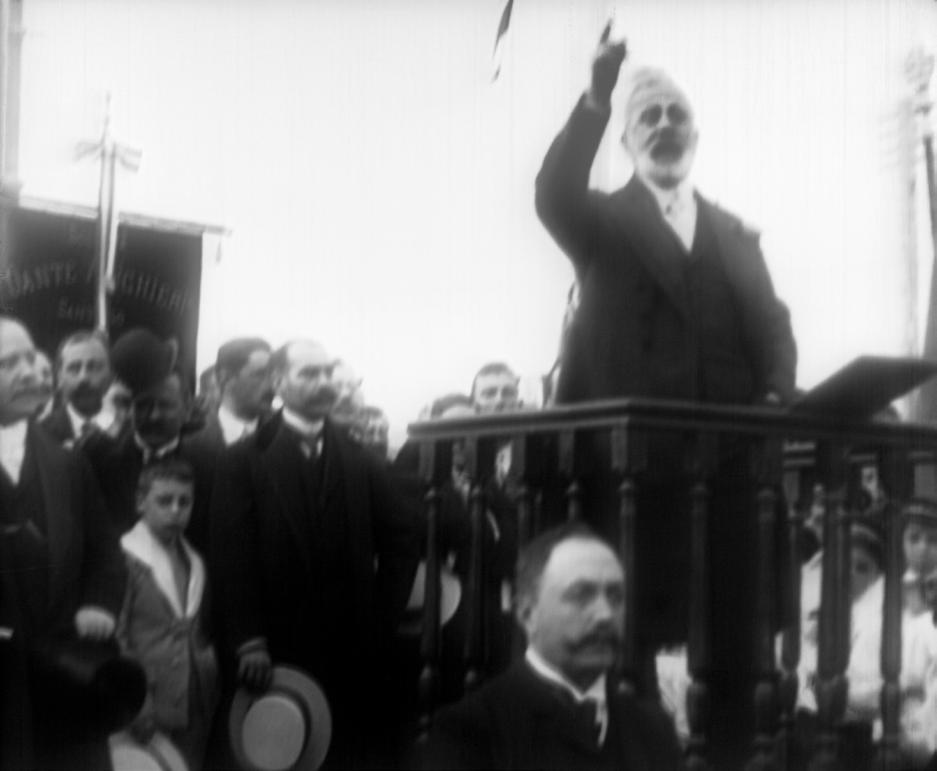 Fragmento que correspondería al filme que registraba la inauguración del Palacio de Bellas Artes, ceremonia efectuada el 21 de septiembre. No es claro si se trata del filme titulado “Inauguración del Palacio de Bellas Artes”, exhibido el 1 de octubre de 1910.