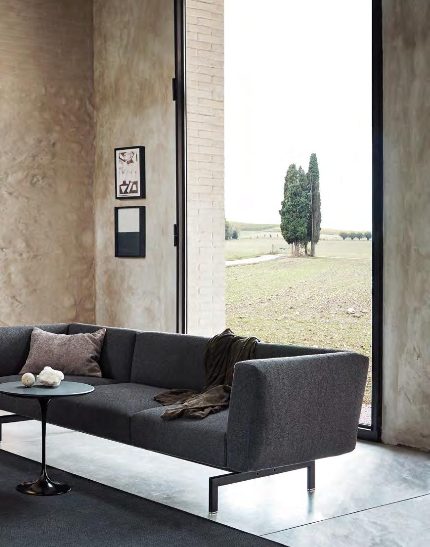 ISOLA : Ante in laccato seta Laguna, struttura alluminio Laguna, maniglie Eero Champagne.