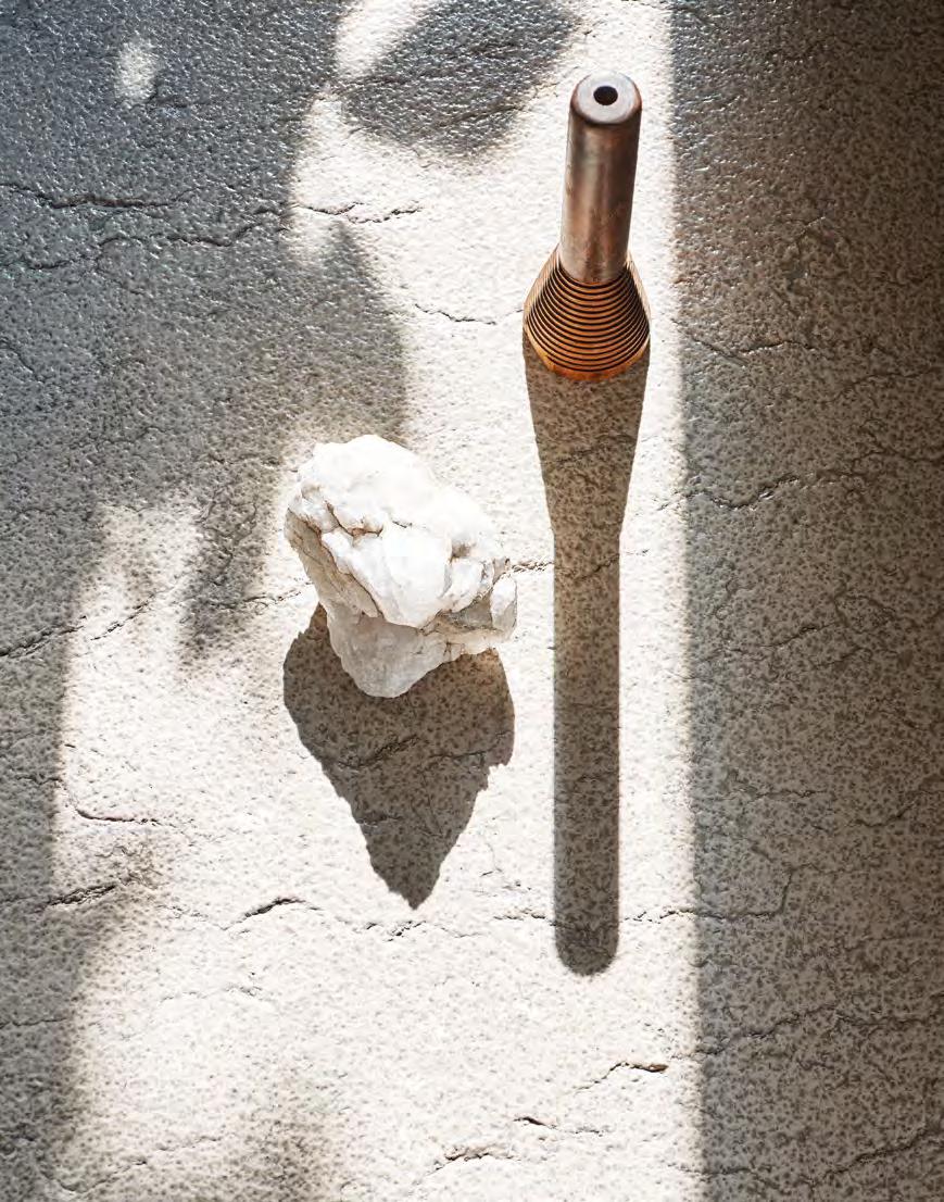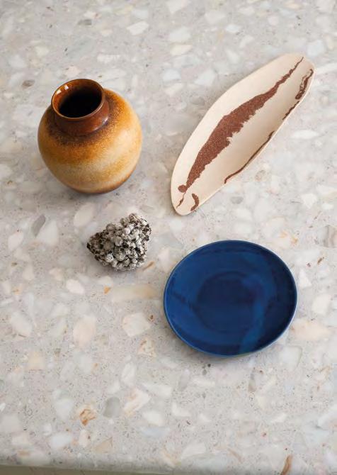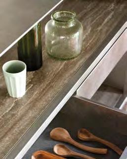 Fes alluminium lacquered structure, Oi handles and Nickel Nero Lucido feet, Fior di Pesco engineered stone worktop.