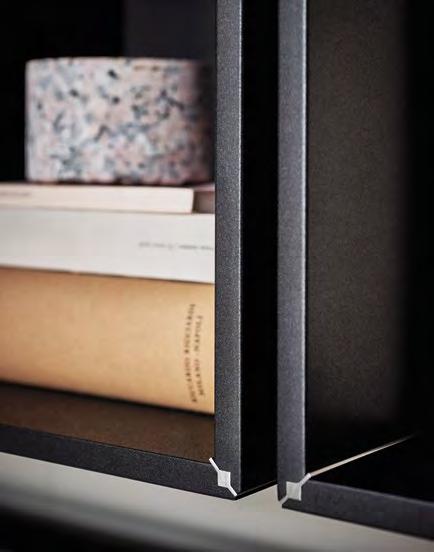 ISLAND : Doors with Laguna silk–effect lacquer, Laguna aluminium structure, Champagne Eero handles.
