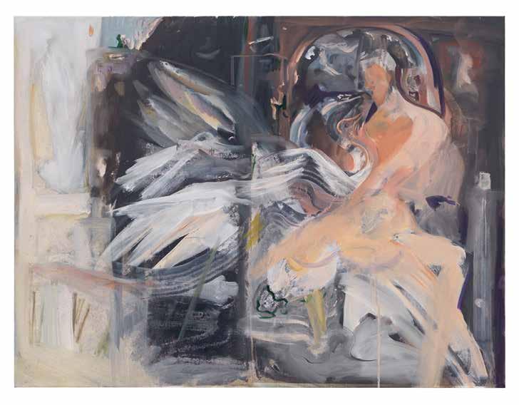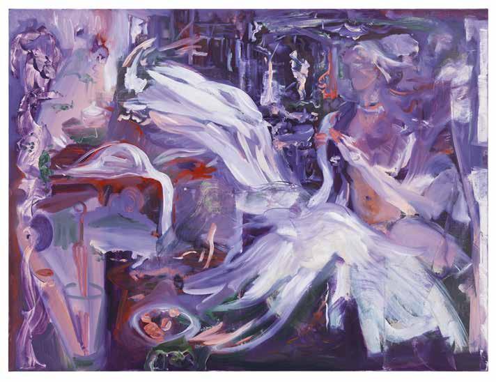 In contrast, in the work Lady and the Swan, in which Cecily Brown reimagines a drawing by Franz Marc, we very clearly see a swan. Yet a disconcerting brutality permeates this mixture of animal and human corporeality. The outspread wings stand neither for hope, nor for freedom, they are a downright overwhelming threat. “Being so caught up, / So mastered by the brute blood of the air,” writes Yeats in his poem about Leda and her feathered captor, and it is precisely this brute blood of the air that we think we hear throbbing in Cecily Brown’s painting, just as in the After Bosch series we see a veritable witches’ sabbath: shadowy demons, voracious birds, tortured bodies, and magical creatures, the full force of those ancient fears that nameless storytellers banished into fairy tales, which astonish, confuse, and frighten us to this day.