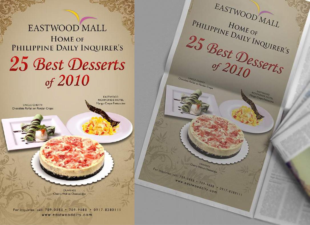 Print ad that features the top-notch desserts offered by restaurants in EWM, presenting the finest culinary delights available in the city. The Philippine Daily Inquirer (PDI) is the most widely read broadsheet newspaper in the country.