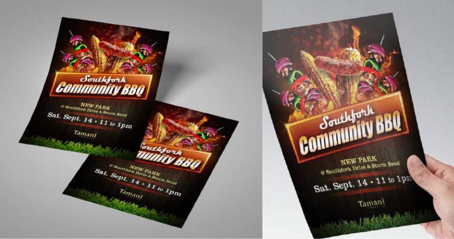 (TOP) SOUTHFORK Flyer for a community bbq event of Southfork (BOTTOM) SIGN GURU Company brochure for Sign Guru that shows their different services