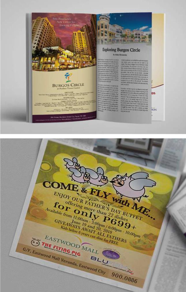 (TOP) BURGOS CIRCLE Sustaining Magazine ad for BC (BOTTOM) EASTWOOD MALL Newspaper ad about Father’s Day Buffet